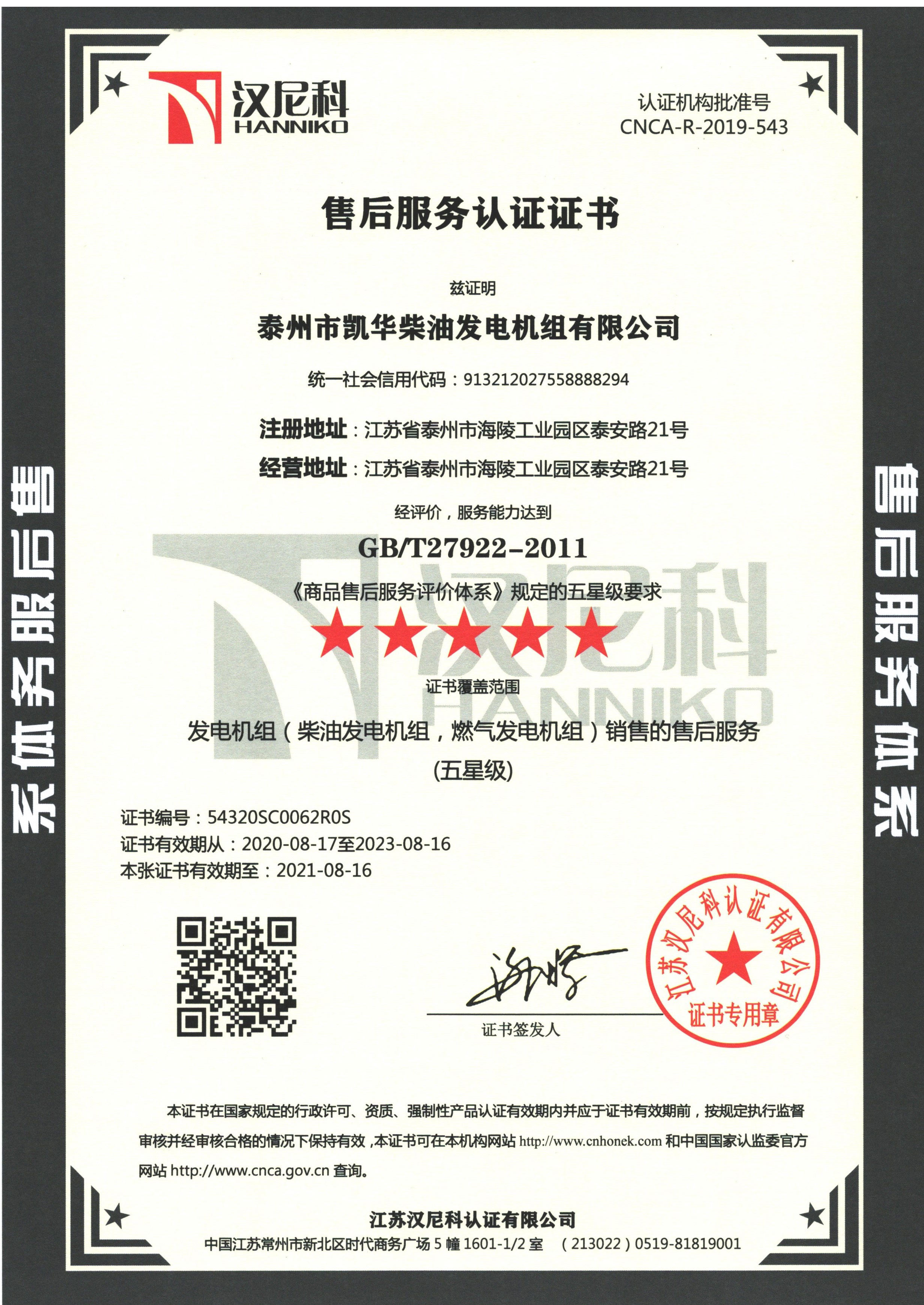 • 斯坦福發(fā)電機OEM證書