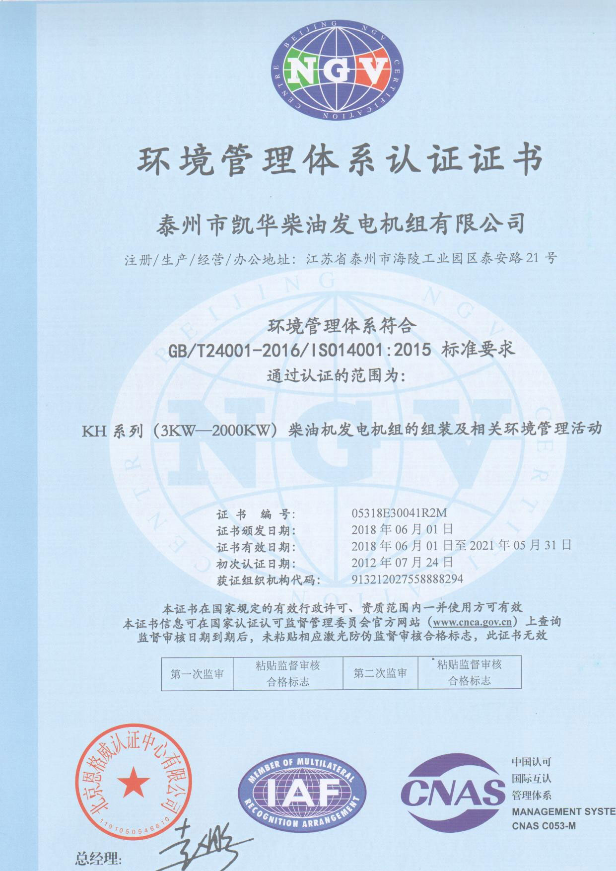 • ISO認證證書