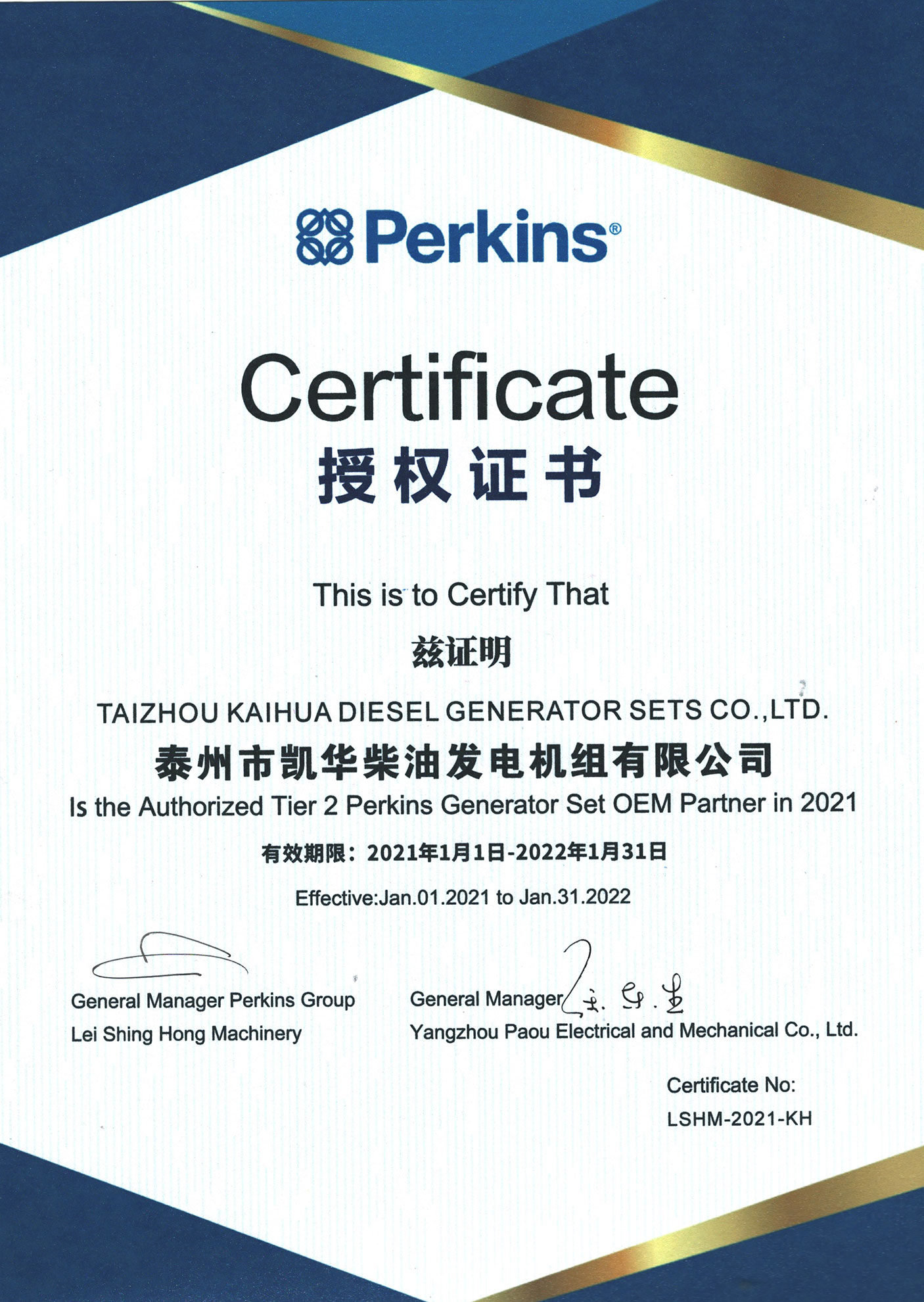• 帕金斯OEM證書