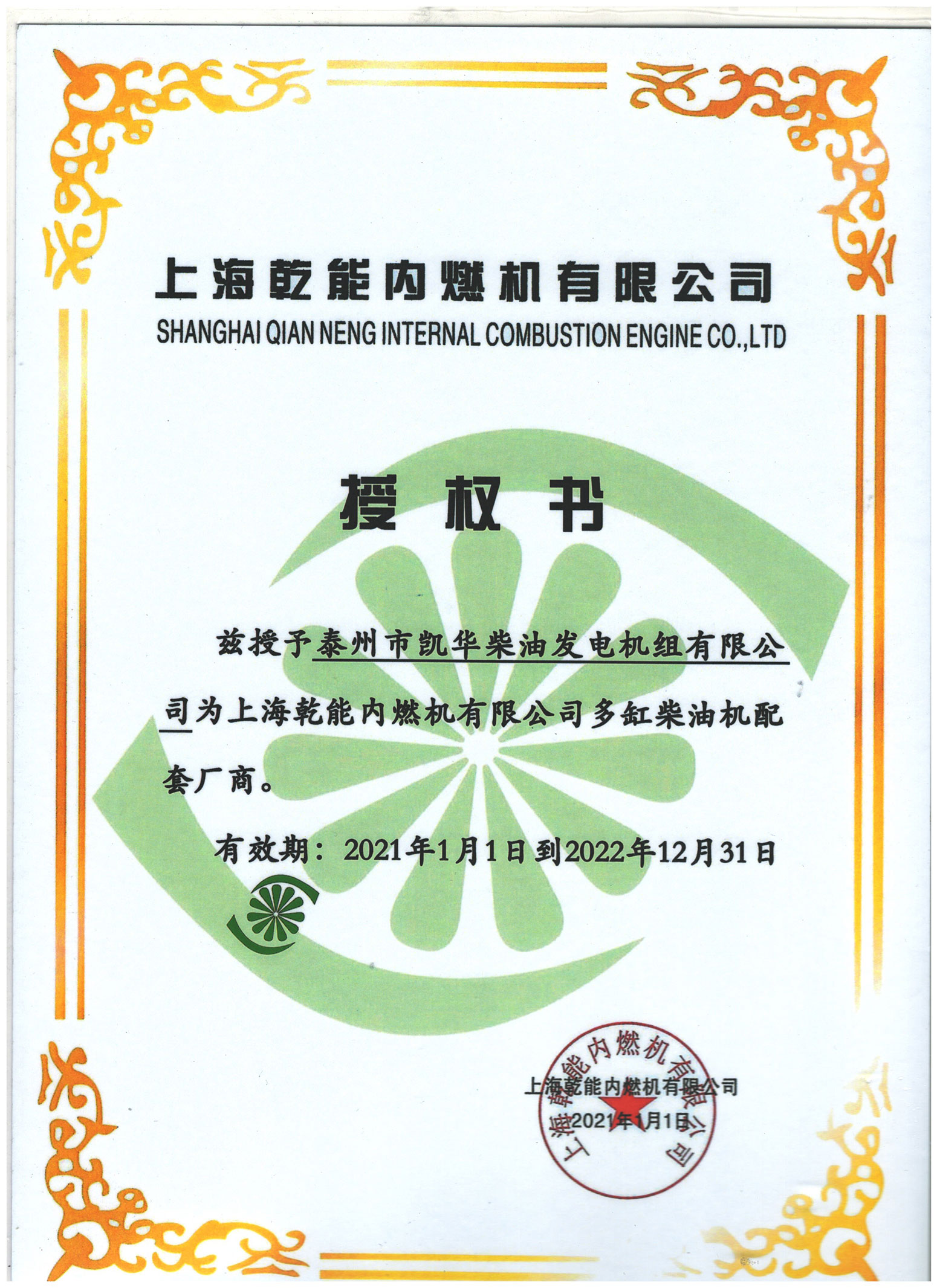 • 馬拉松發(fā)電機OEM證書