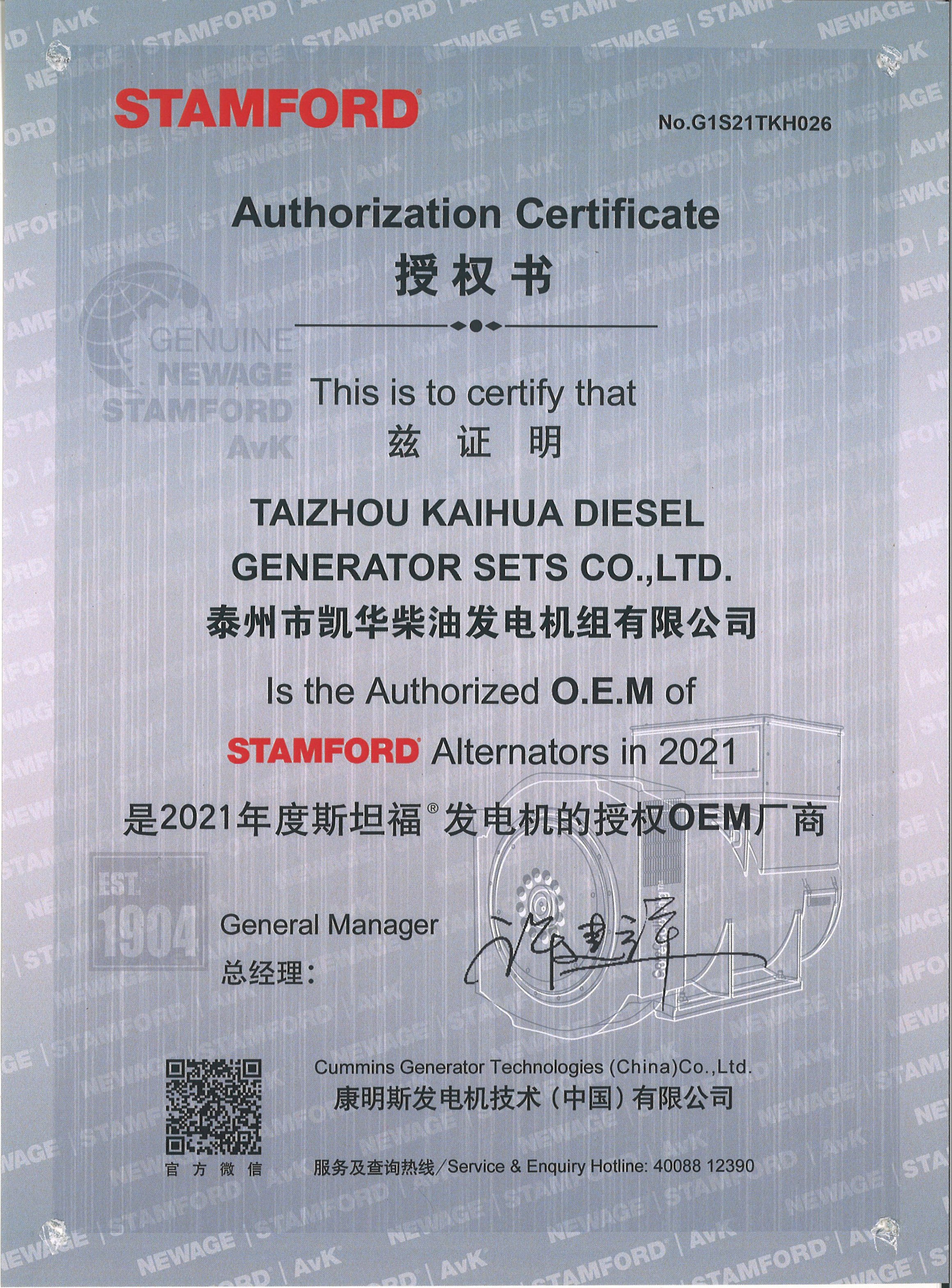 • 重慶康明斯OEM證書